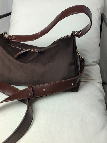 کیف دوشی جیر شل وارداتی مخمل سایز متوسط با یراق آلات طلایی و ترکیب چرم